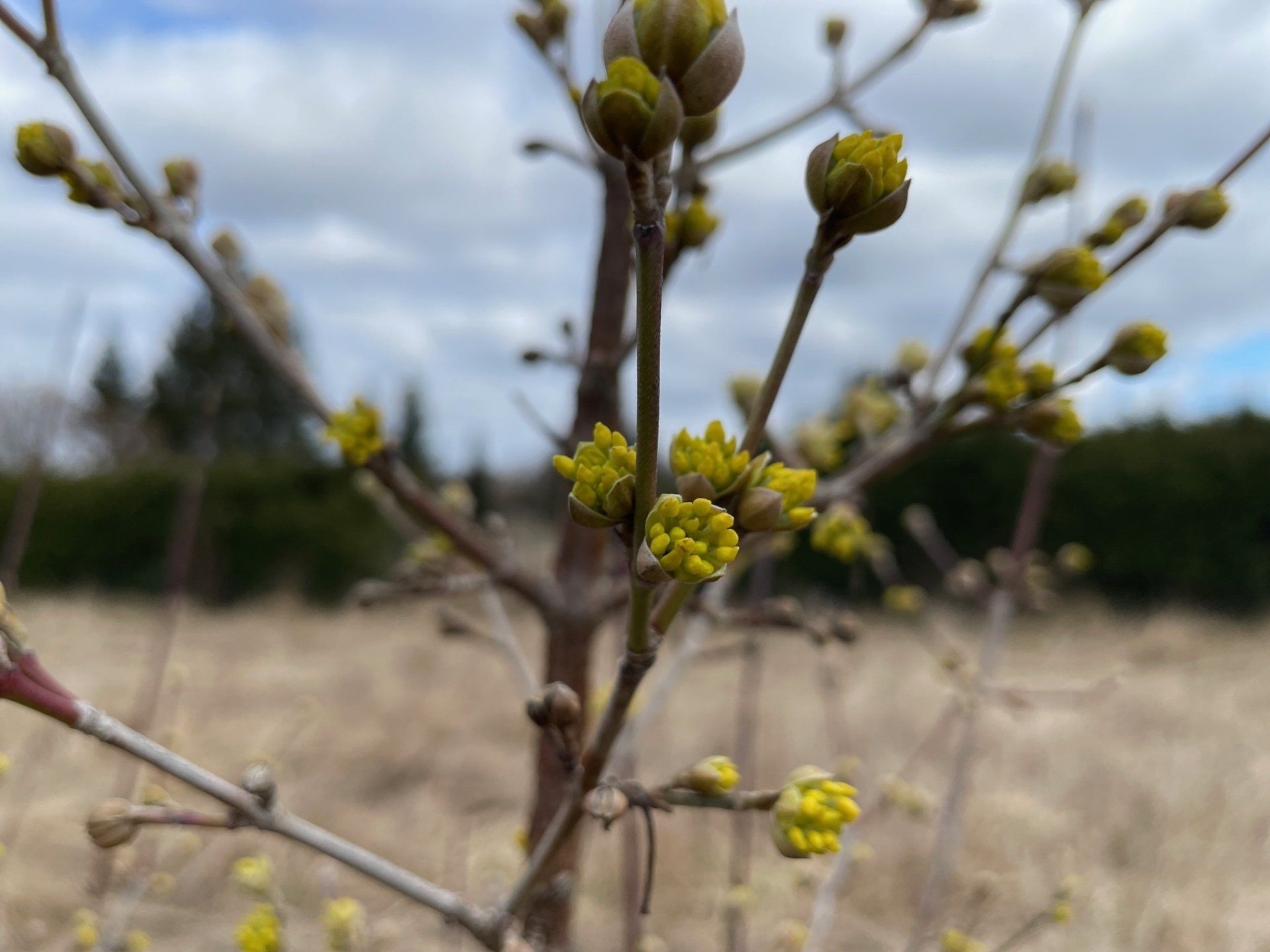Bild: Blühende Kornelkirsche im Naturgarten Langenau